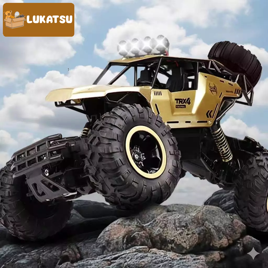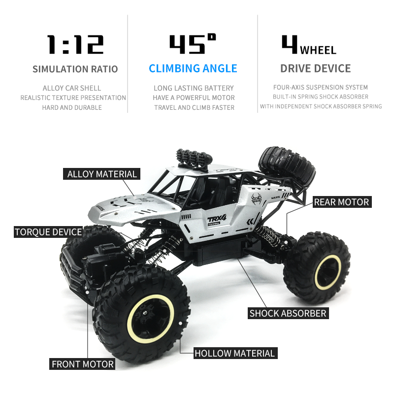 Mainan Mobil Remote Control 4WD dengan Lampu 1:12 RC Mobil Offroad Besar Bahan Alloy 2,4GHZ Remote