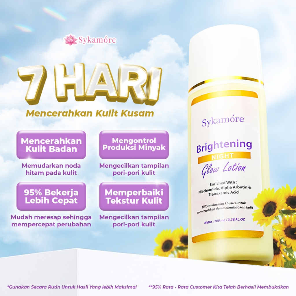 Body Lotion Sykamore Brightening Night Glow Hb Dosting Pemutih Badan Niacinamide Alpha Arbutin