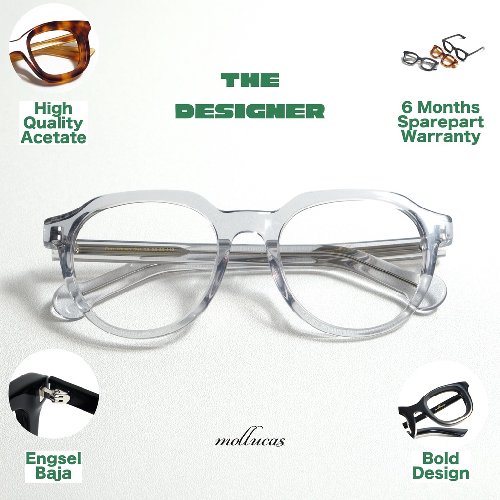 Mollucas - The Designer - Fort Willem Gel - Gratis Lensa Minus/Plus/Silinder Anti Radiasi - Kacamata Pria/Wanita