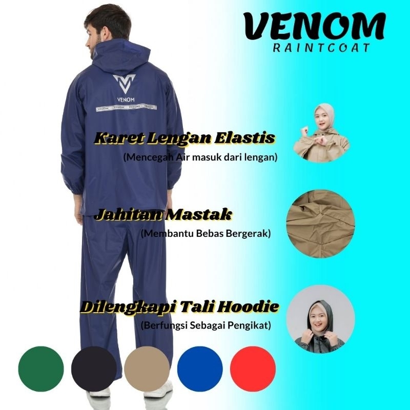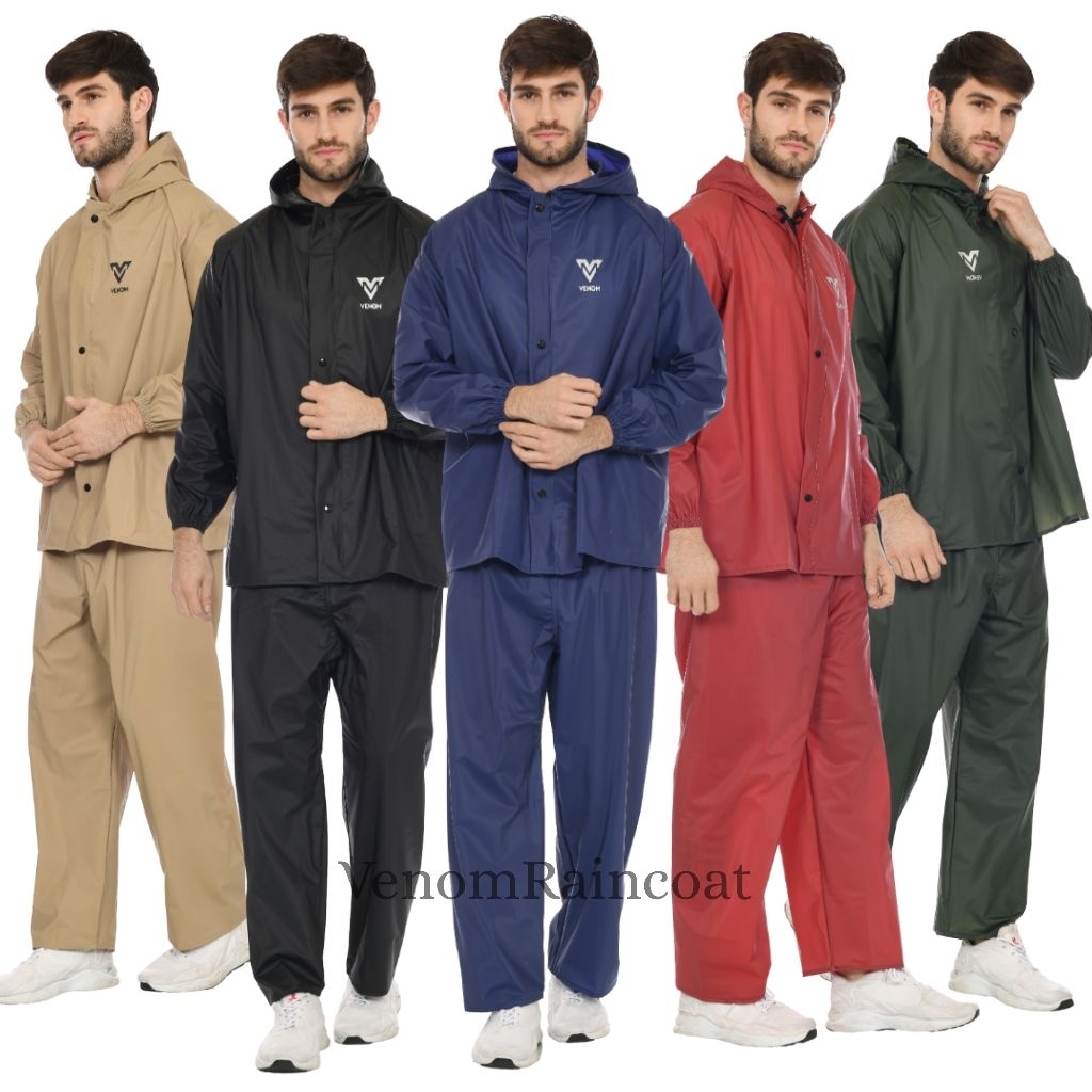 Jas Hujan Raincoat Setelan Celana Pria Wanita Anti Rembes Pvc 025 Tebal Elastis Venom Original