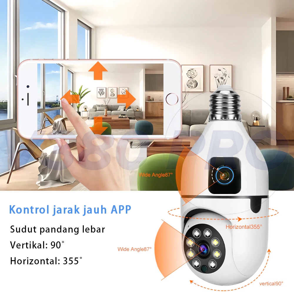 V380 Pro Kamera CCTV Bohlam Dual Lensa 8MP Alarm Deteksi Manusia AI Penglihatan Malam Inframerah