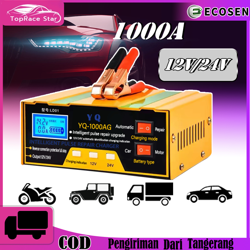 Charger Ecosen Charger Aki Otomatis Smart Intelligent Auto Repair Mobil Motor Truk 12V 2A