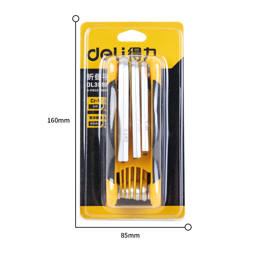 Kunci L Deli Folding Hex Key Set Lipat Ukuran 1.5 Sampai 8 Mm Ujung Rata Dl3598