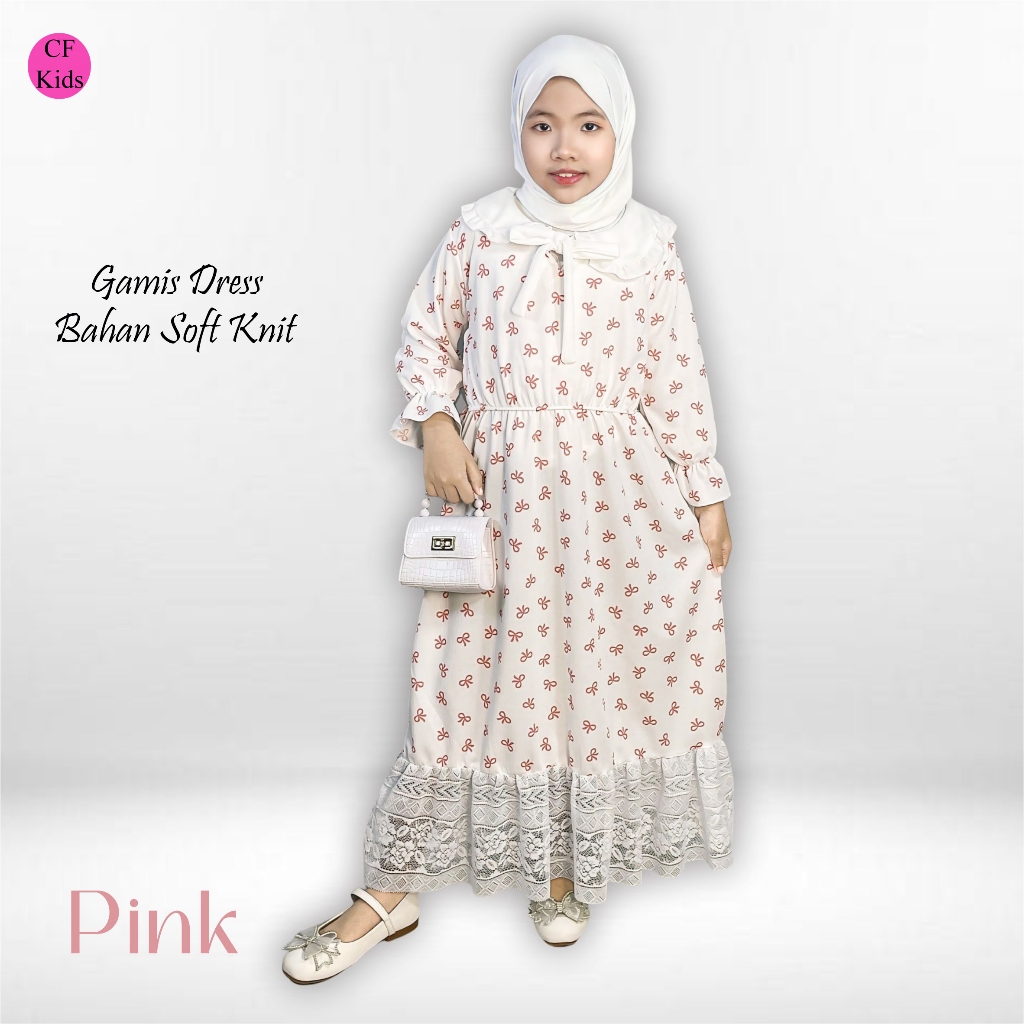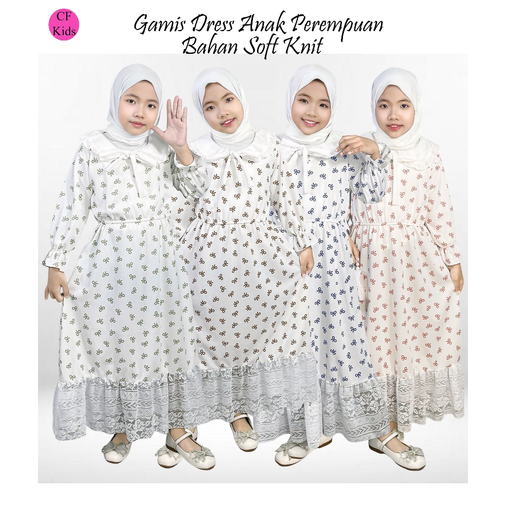 Gamis Anak Perempuan Cf Kids Soft Knit Motif Pita