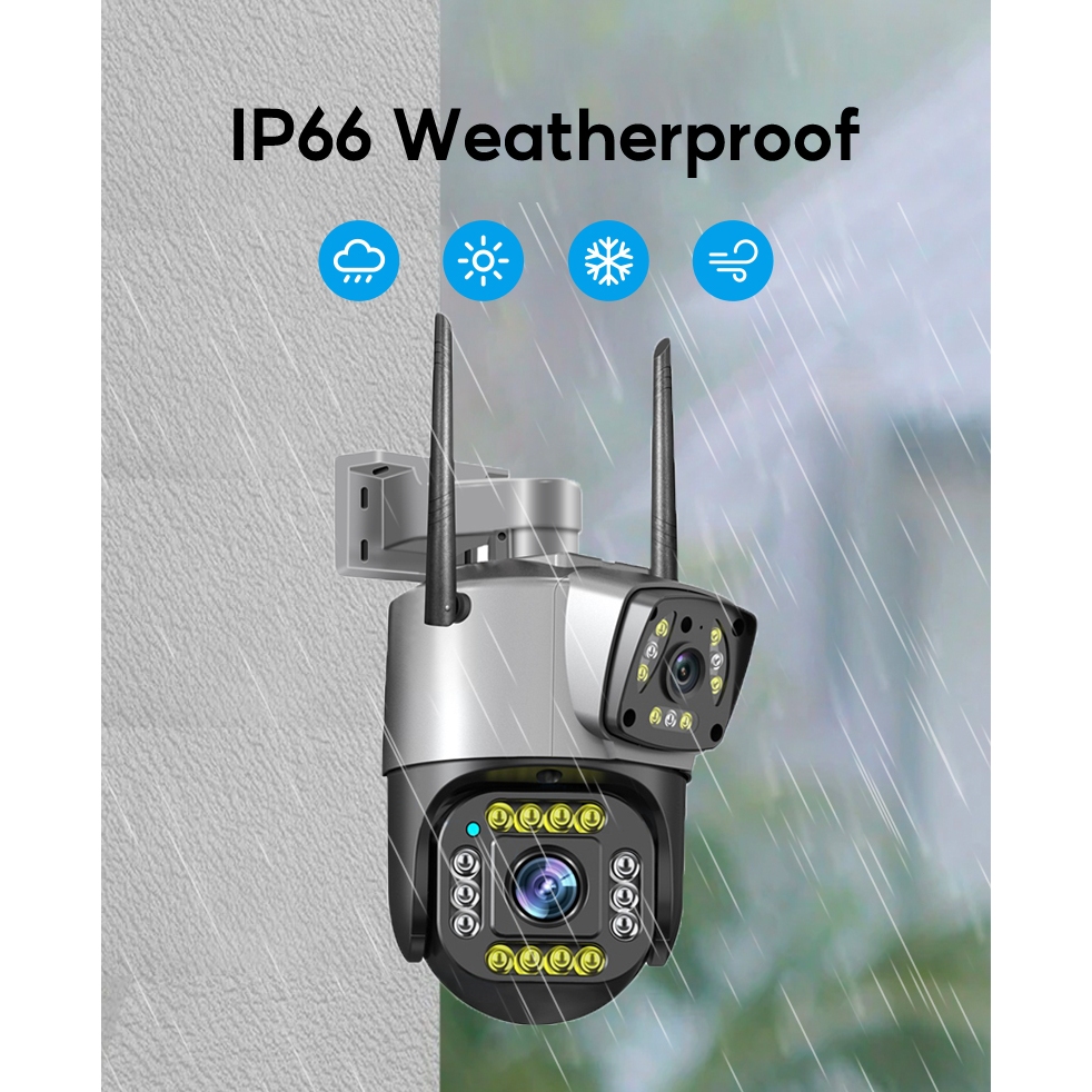 V380 V10 CCTV Outdoor Camera HD Wi-Fi Tahan Air Kamera keamanan Lensa Ganda Pelacakan Gerak