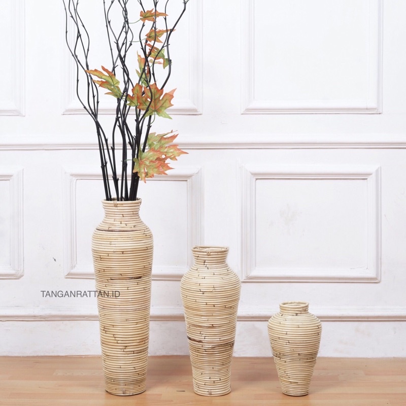 Guci Vas Bunga Rotan Pot Bunga Wortel Finishing Mengkilap