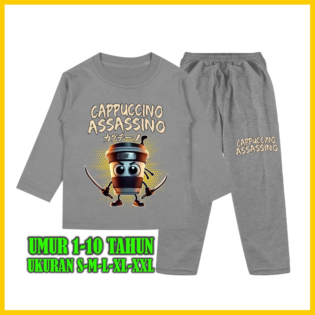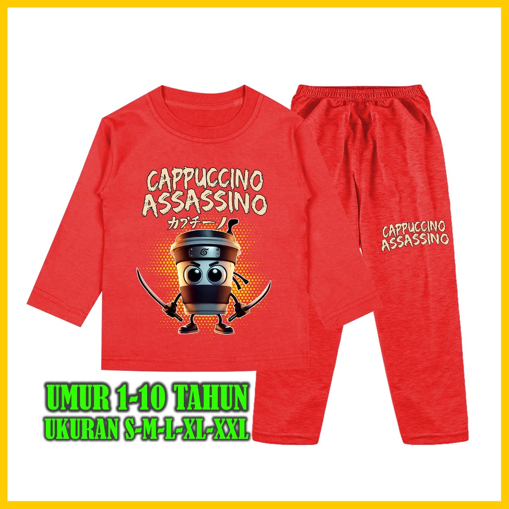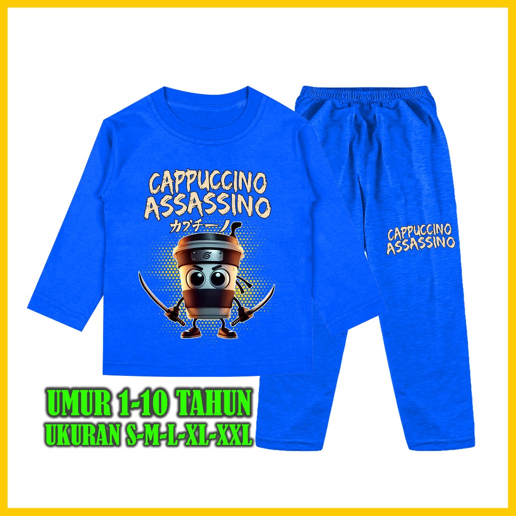 Setelan Baju Tidur Anak Gambar Cappuccino Assassino Piyama lengan Panjang Celana Panjang 1 - 10 Tahun