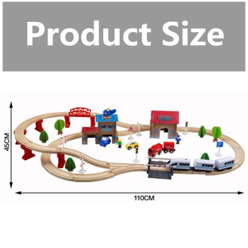 88pcs Electric Train Diorama Wooden Track Set - Mainan trek Kereta Api elektrik dengan jalur kayu Pretend Play
