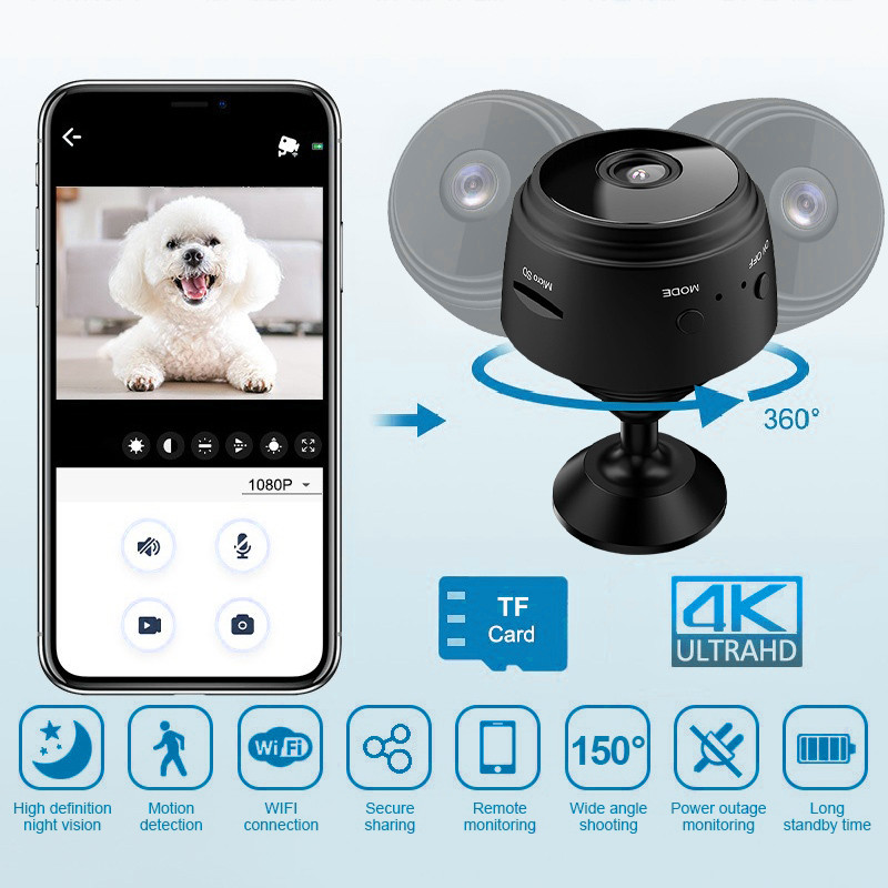 CCTV WiFi Jarak Jauh Lewat HP Wireless A9 Mini Smart Camera Wifi HD 1080P Micro v380 Inframerah Bisa Isi Ulang Pengintai Tersembunyi Cocok untuk Rumah & Kantor