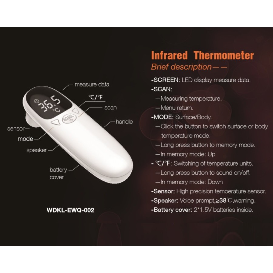 Termometer Infrared Elrosto Non Contact Digital Pengukur Suhu Badan Tangan
