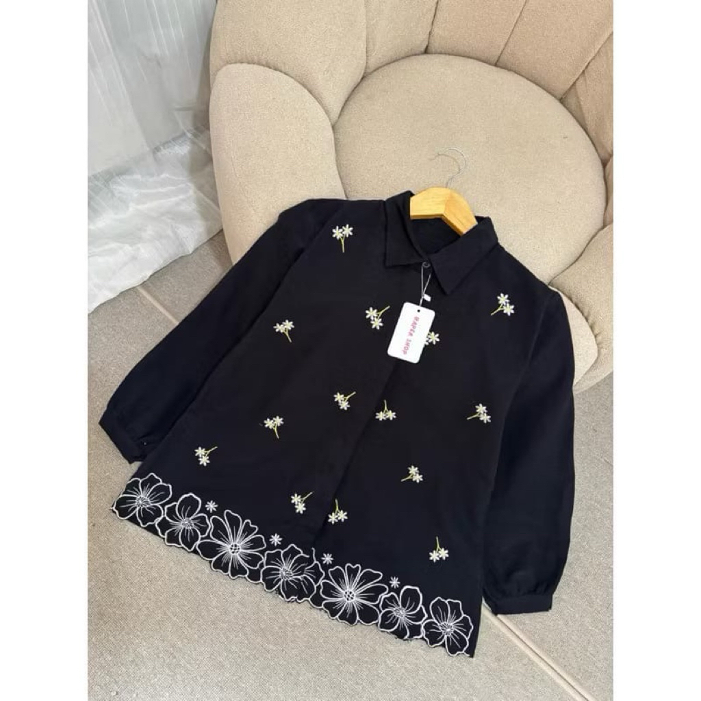 Berri Top Shirt Kemeja Wanita Bordir Premium Linen Rami