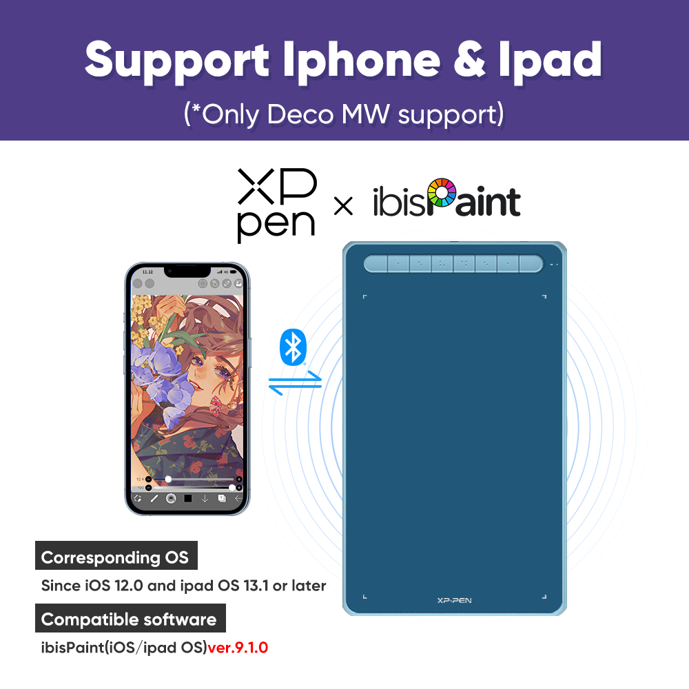XPPen Deco MW Wireless Pen Tablet Graphic Drawing Tablet Support Bluetooth Connection With X3 Pen
