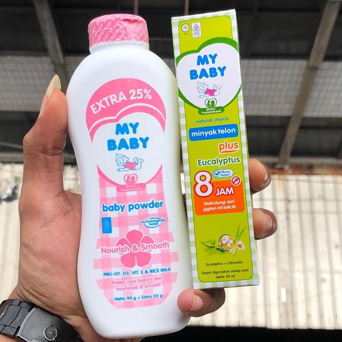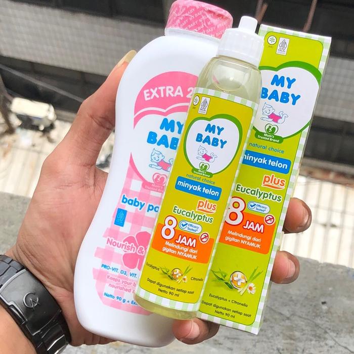 Paket My Baby Powder Pink 135ml dan Minyak Telon 90ml | Bedak Kulit Bayi Halus & Bebas Gigitan Nyamuk
