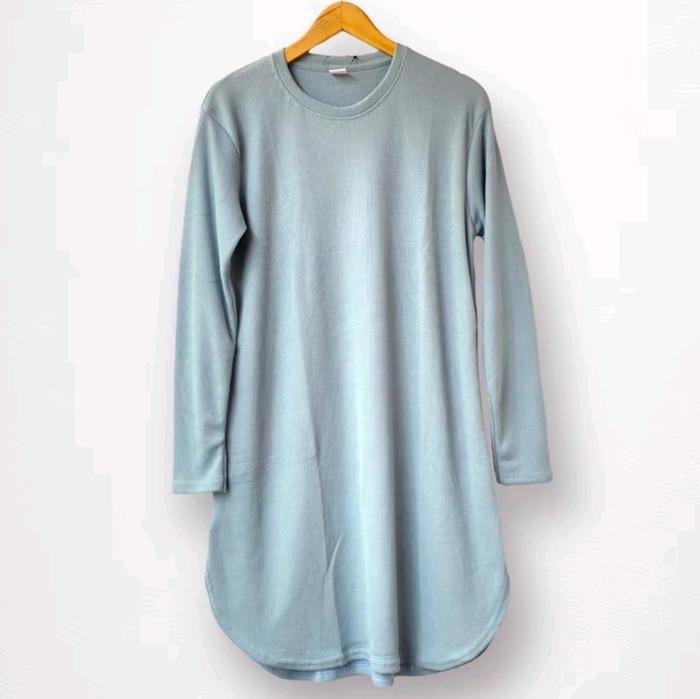 Tunik Knit Waffle Oval Terbaru / Long Tunik Rajut - Denim All Size