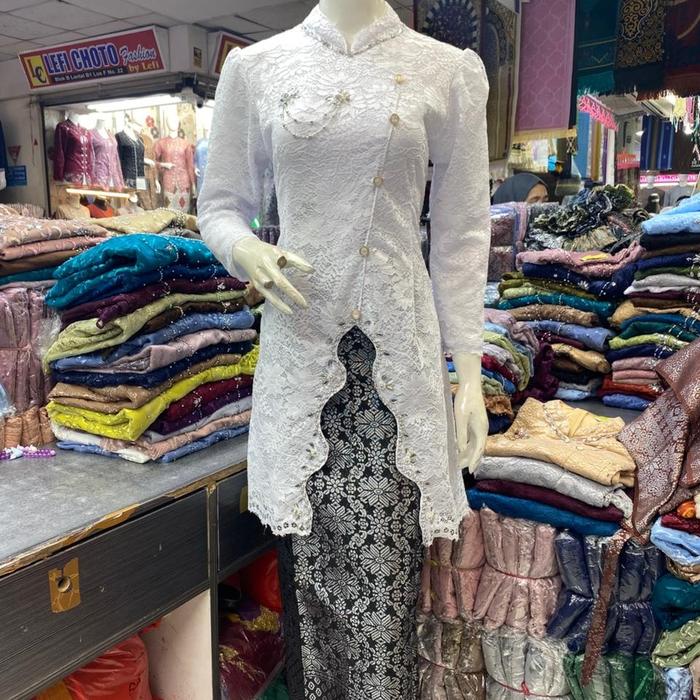 TUNIK JANGGAN BRUKAT PAYET/ TUNIK JANGGAN MUTIARA/ TUNIK JANGGAN WISUDA/ TUNIK - PUTIH SET SONGKET M