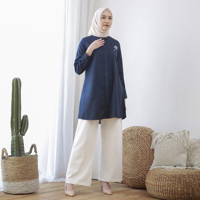 Wulfi Day to Day Kemeja Tunik Toyobo Fenomenal Ukuran Komplit Navy Kantor Muslim Nyaman Panjang - Navy XS