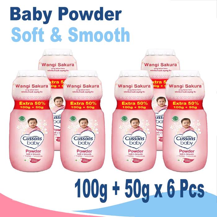 [ 6 PCS ] Cussons Baby Powder Soft & Smooth 100g + 50g x 6 Pcs - Bedak Bayi - Spesifikasi