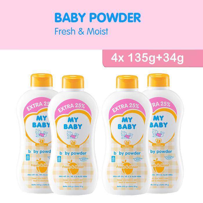 [ 4 PCS ] My Baby Powder Fresh Moist 135gr Extra 34gr x 4 Pcs - Bedak Bayi - Spesifikasi