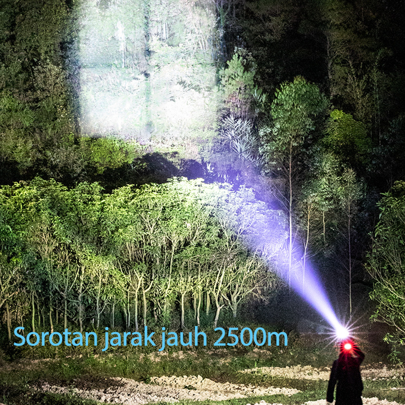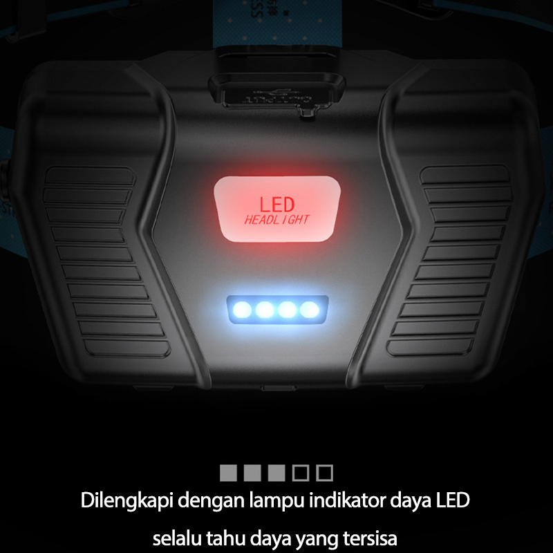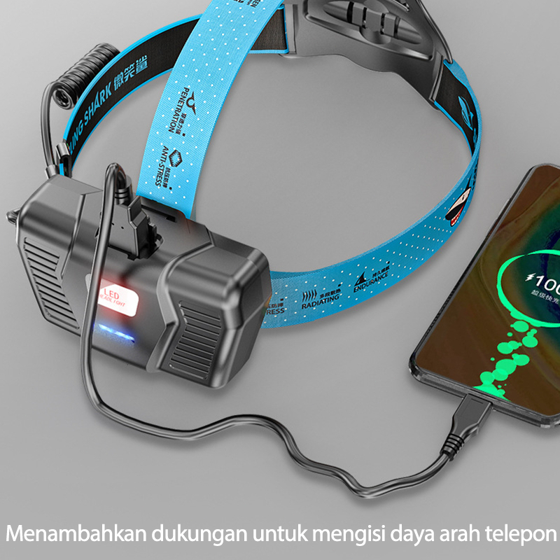 Senter Kepala Led Smiling Shark K225B - Bisa Zoom - Bisa Sensor Tangan - Bisa Di Cas - Cahaya Terang