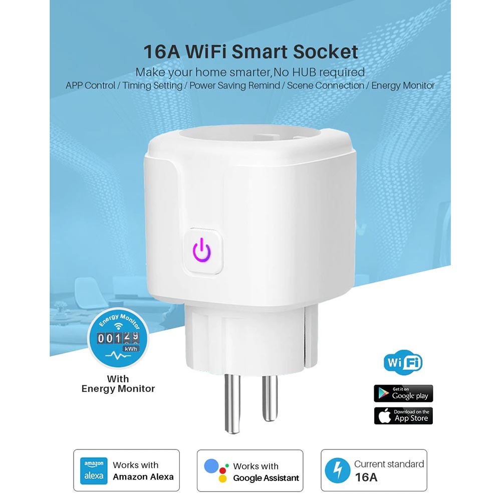 Steker Smart Plug Wifi Eu 16A Stop Kontak Listrik Dengan Monitoring Function