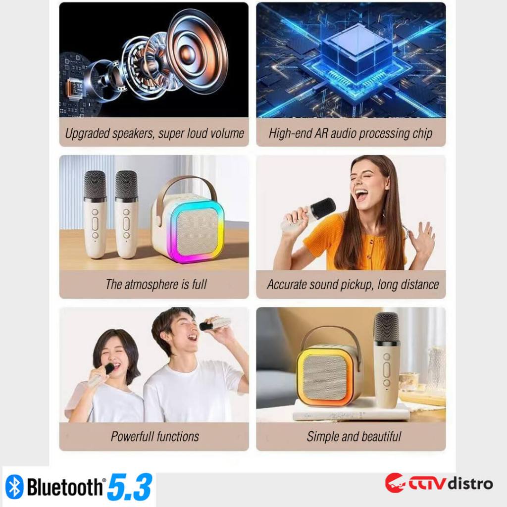 Speaker Karaoke Bluetooth Mini Plus Mikrofon Wireless Rechargeable Rgb Light
