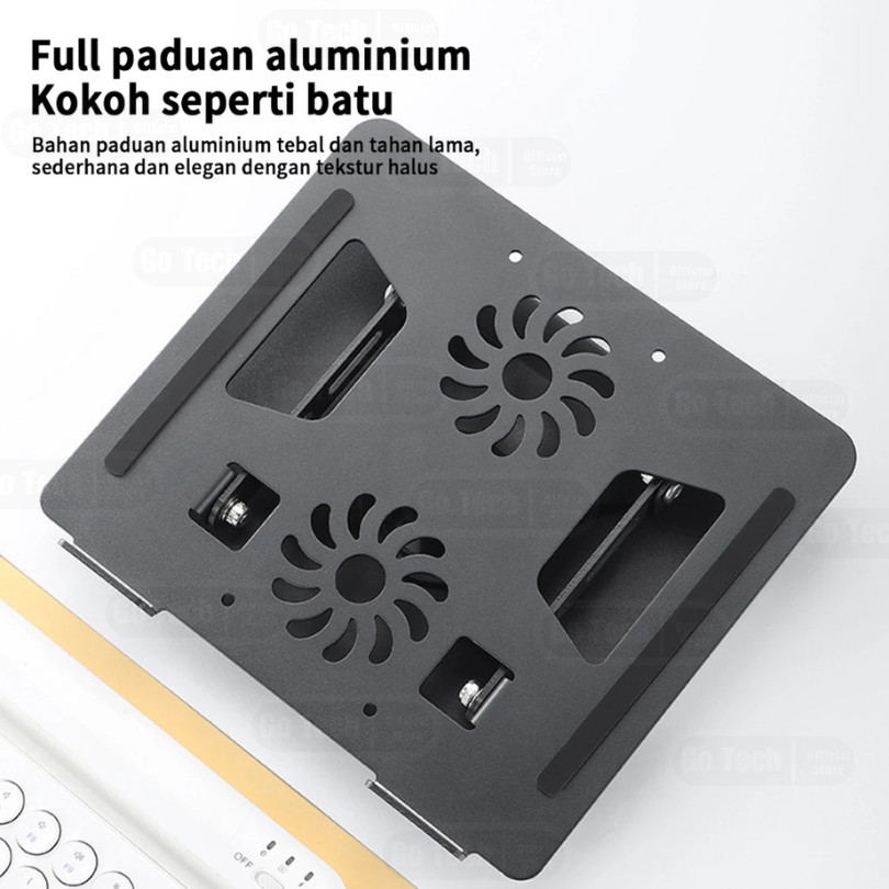 Laptop Stand Go Tech 360 Rotatable Bisa Dilipat Portable Double Mount Meja Aluminium Gt