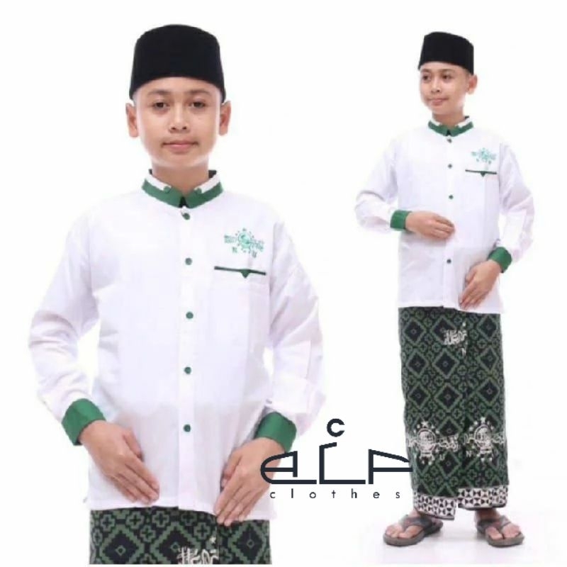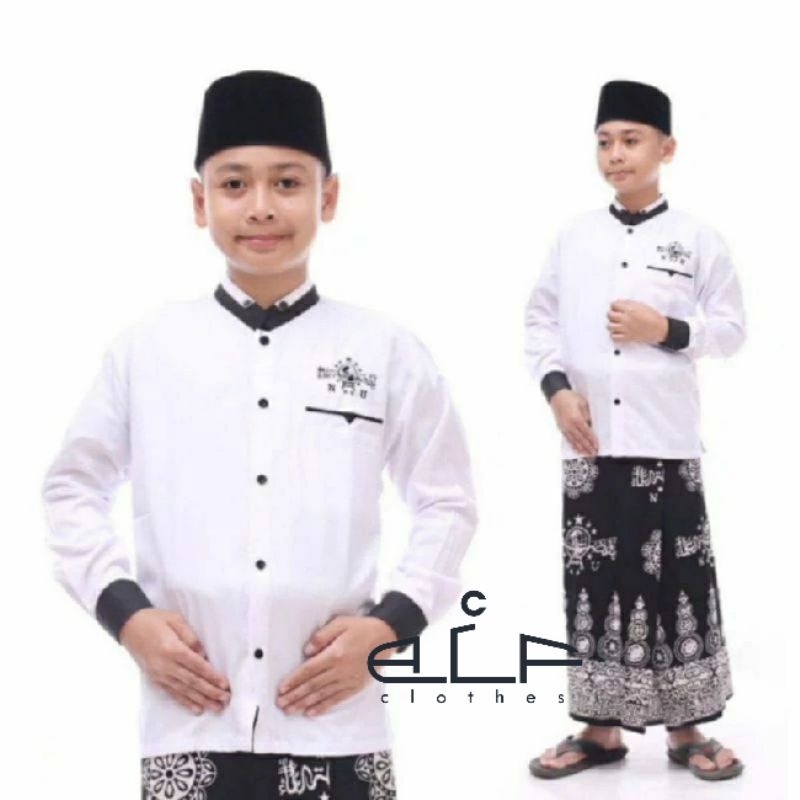 Baju Koko NU Anak Laki-laki Usia 3-14th SD-SMP Atasan lengan panjang Putih Seragam TPQ Madin Toyobo