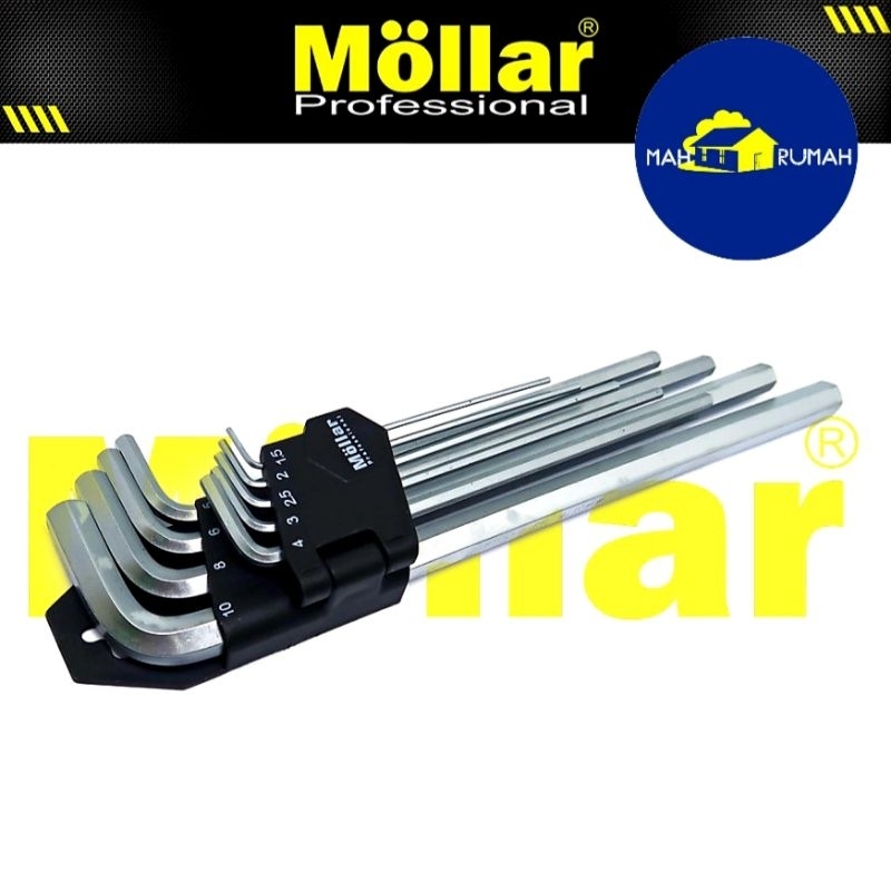 Kunci L Panjang Segi Enam Hex Sembilan Pcs Set Mollar Hex Key Long Flat End