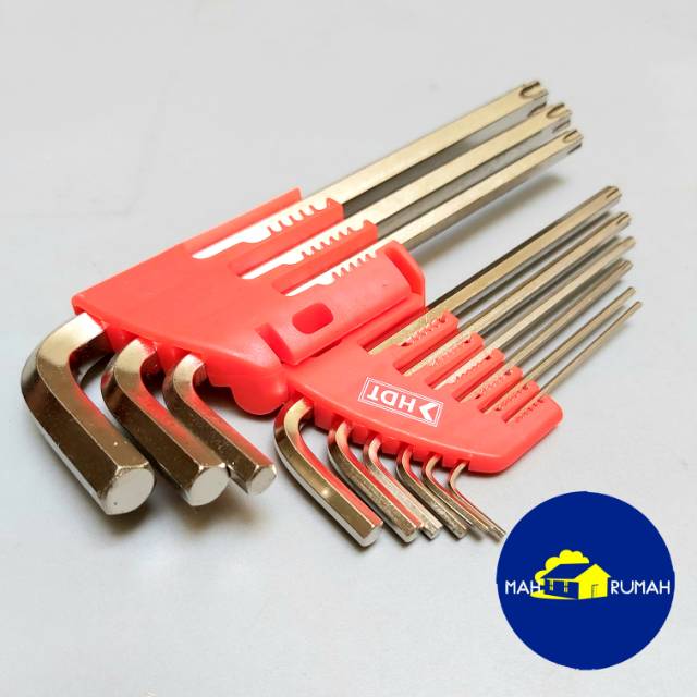 Kunci L Panjang Set Bintang Lubang Segi Kombinasi Sembilan Pcs Hdt Hex Torx Key