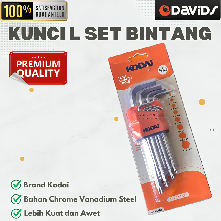 Kunci L Set Bintang Panjang Sembilan Pcs Kodai Kls03 Untuk Peralatan Bengkel