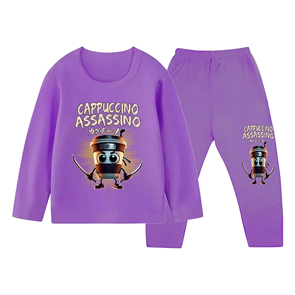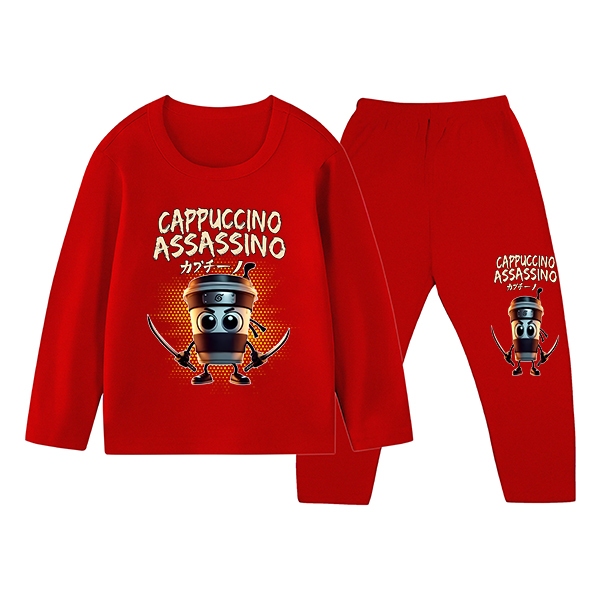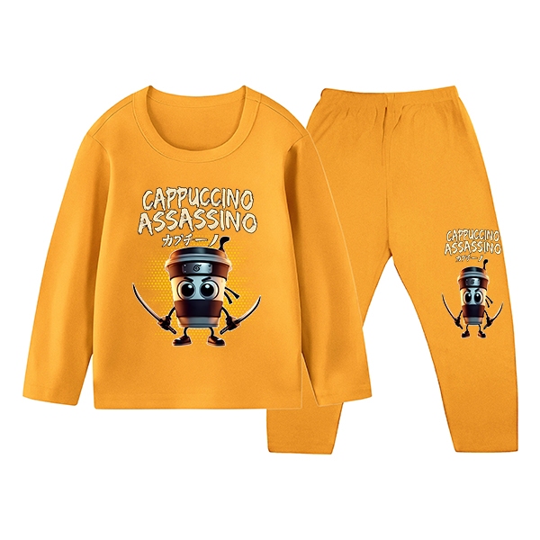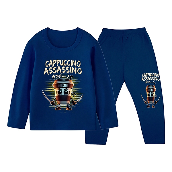 Piyama Baju Tidur Anak Laki-laki Gambar Cappuccino Kaos Dan Celana Panjang Ukuran S Sampai XXL ZM-1764
