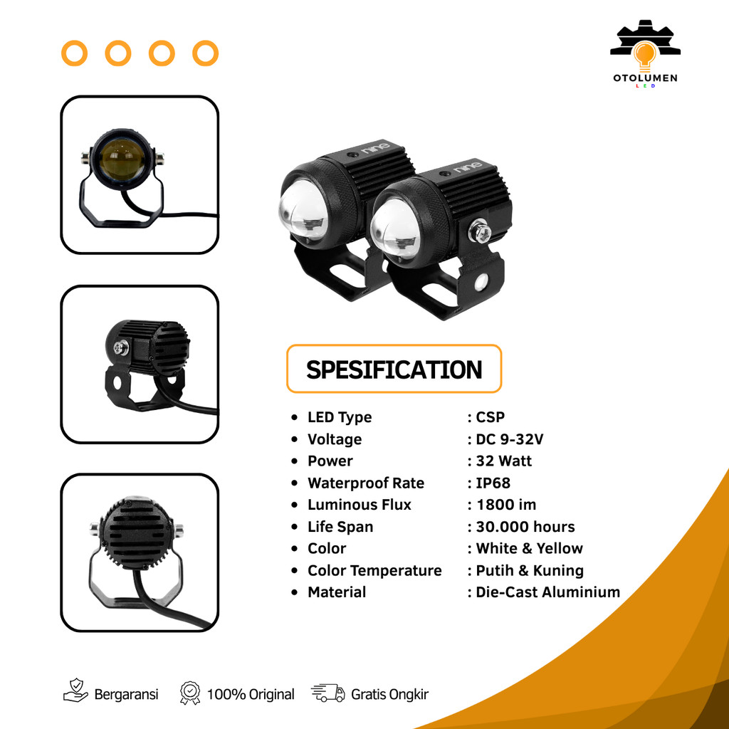 Lampu Tembak 1 Mata D2 Laser Q2 1 Set Putih Kuning Kipas Super Terang Motor Mobil - LUMINOSLED