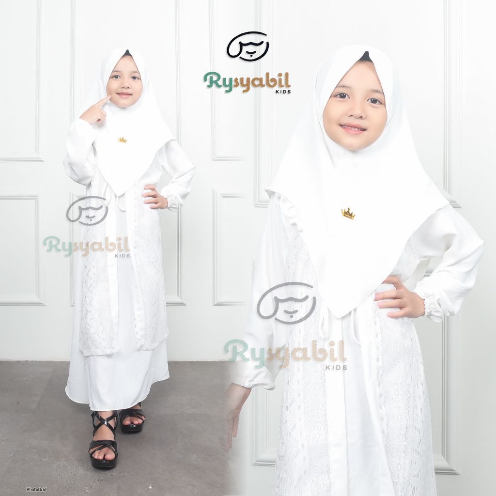 Gamis Anak Putih Manasik Set Hijab Crinkle Airflow Premium