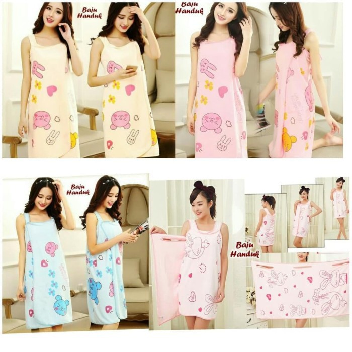 Handuk Kimono Baju Dewasa Motif Mandi Renang Wearable Bath Towel Dress Lembut Nyaman