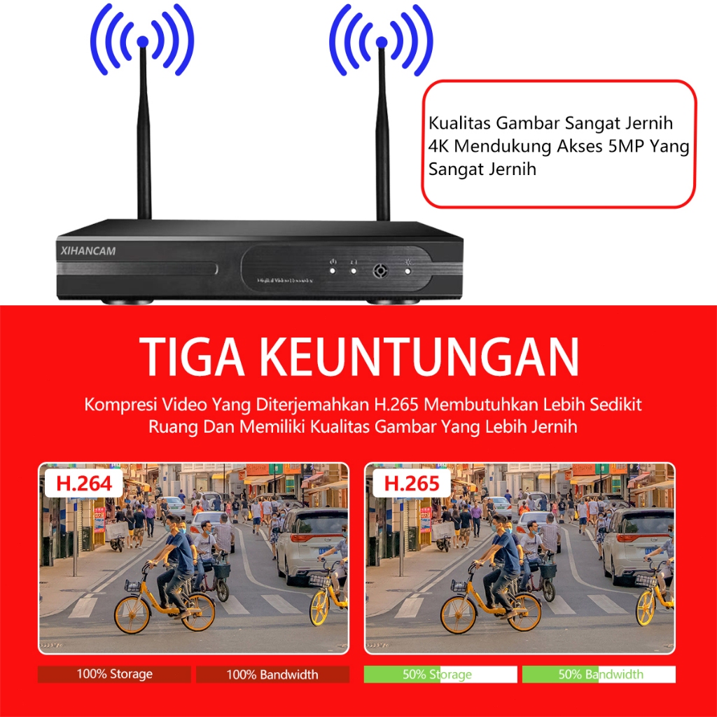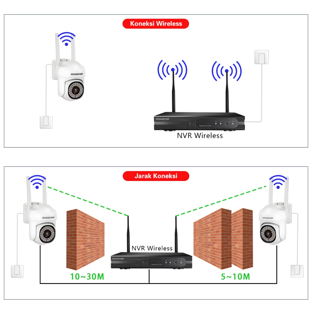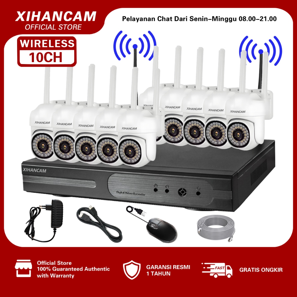 XIHANCAM Paket CCTV Wifi 10 Channel 10 Kamera Nirkabel NVR Wireless 5MP 10CH Kit Komplit Siap Pasang
