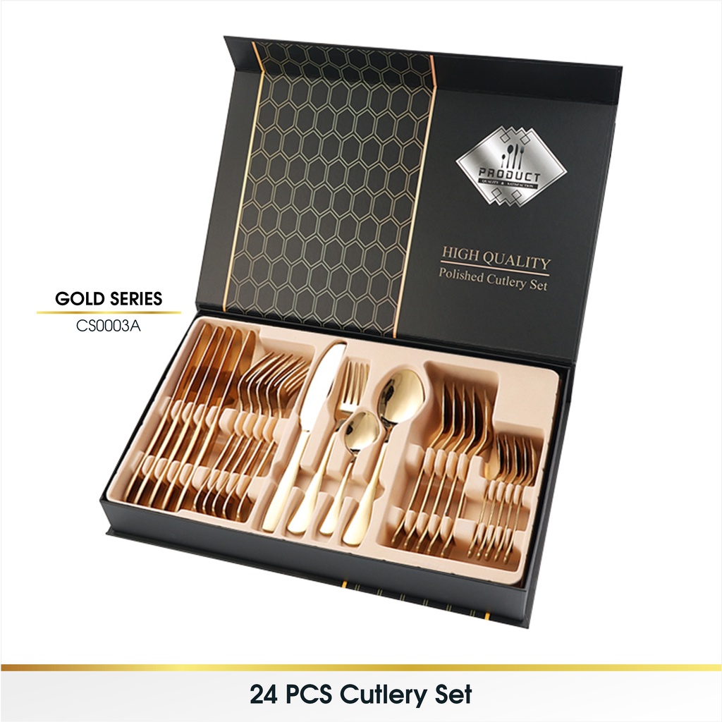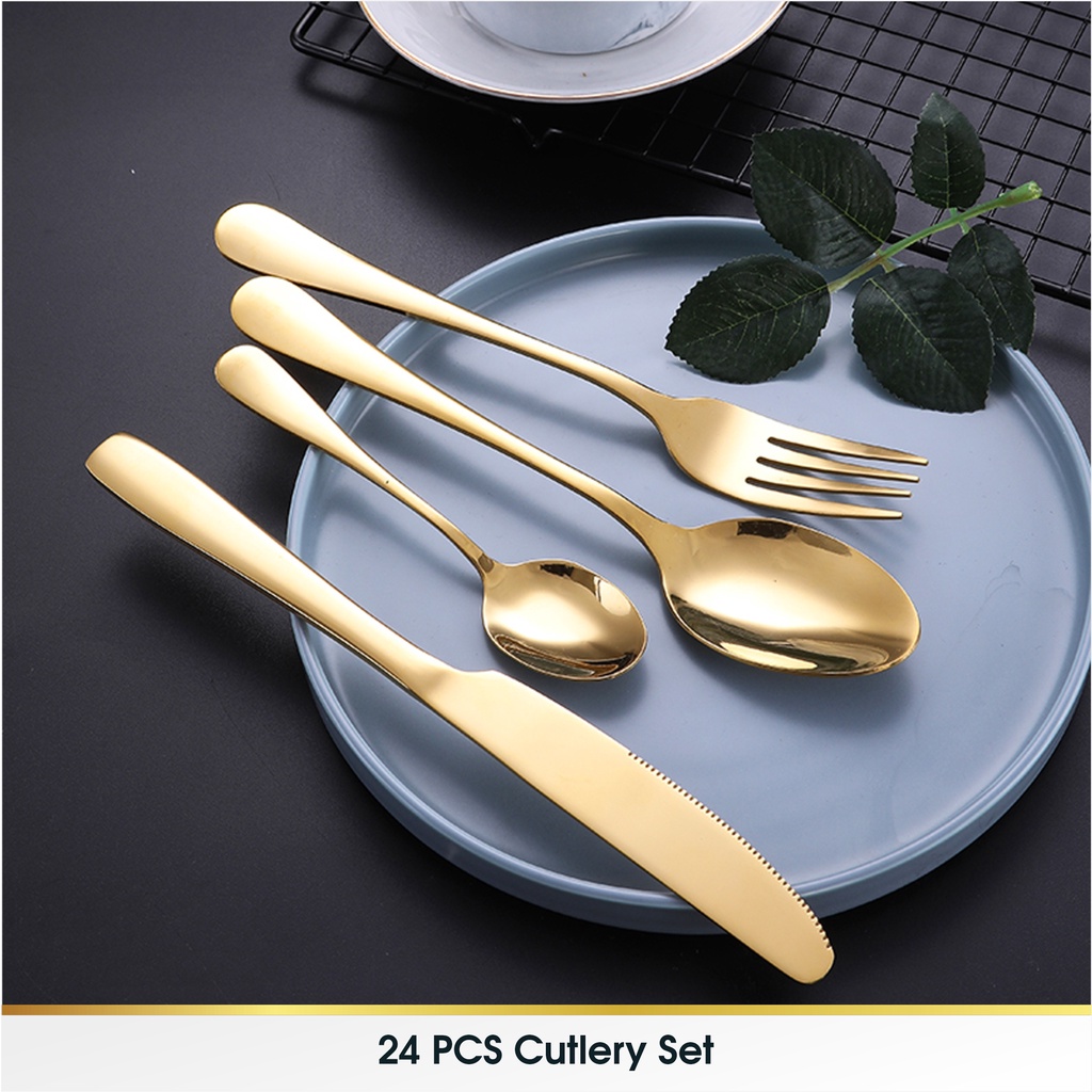 24 Pcs Set Cutlery Sendok Alat Perlengkapan Makan Korea Sendok Garpu Set Stainless Steel 24 Pcs