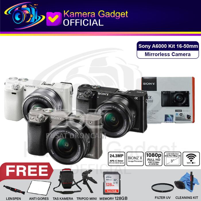 Sony Alpha A6000 Kit 16-50Mm Garansi Original Mirrorless Camera - Body Black, Paket Standard