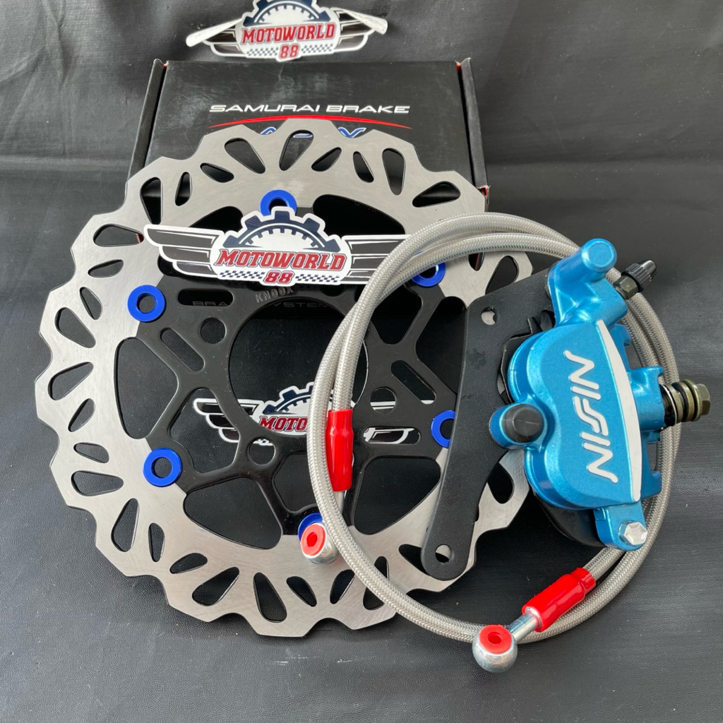PIRINGAN DISC CAKRAM DEPAN 220MM + KALIPER SAMURAI 2PISTON NIZZIN + SELANG REM 95CM CARBON + BREKET MIO SPORTY / VARIO B