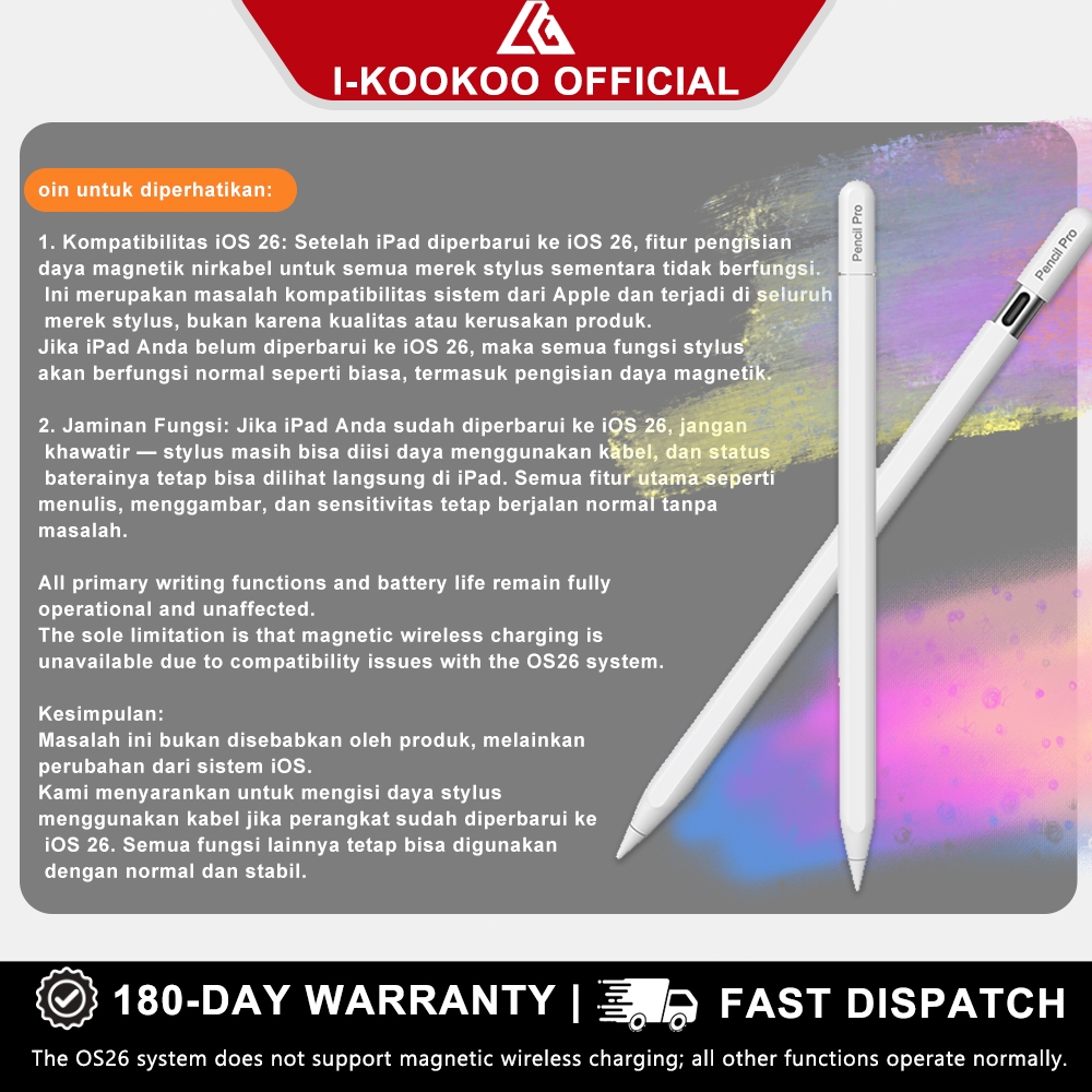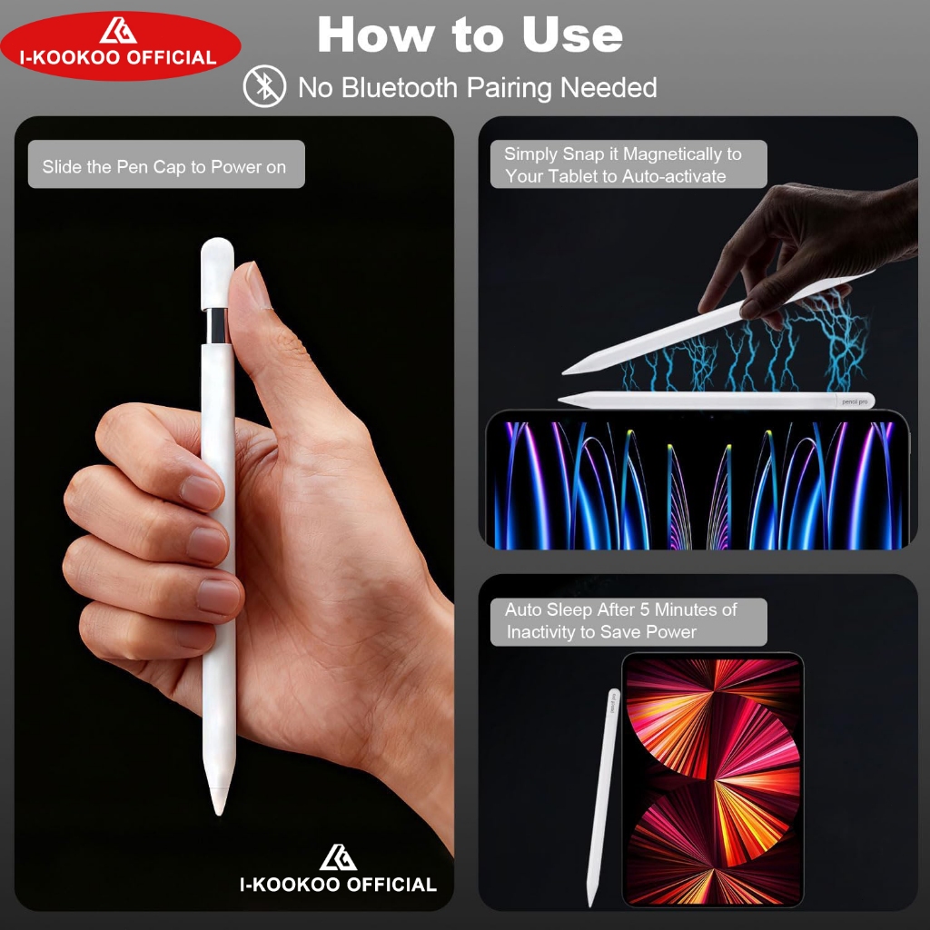 I-KOOKOO 2025 ORI Wireless Charge Stylus Pen for iPadMini 7,Pro M4 2024,Air 11,Tilt sensitivity ApplePencil Series / Sty