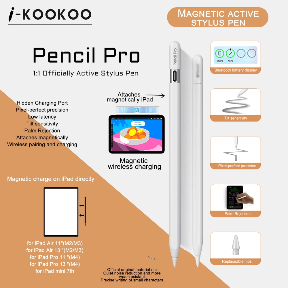 Wireless Charge Stylus Pen for iPad Mini 7,Pro M4 2024,Air 11(M2/M3)2025,Tilt sensitivity Apple Pencil Series / Stylus w
