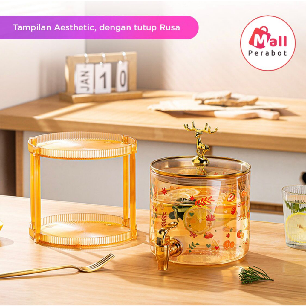 Mall Perabot Dispenser Air Kaca Ketel Air Dingin Kaca dengan Tatakan Kayu Tempat Minuman Es Jus 3.6L