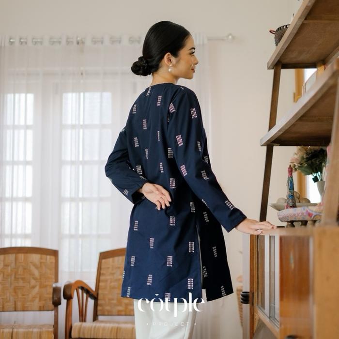 Couple Project Temu Collection - Tunik Katun Embroidery Navy Atasan Wanita Muslim Dewasa - M