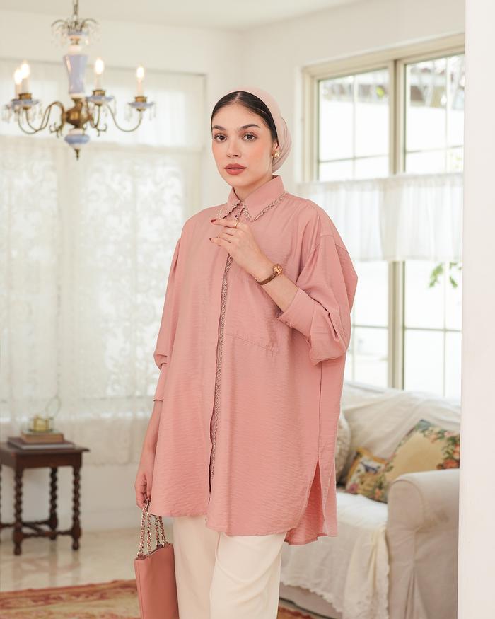 Heaven Lights - Hanifa Long Shirt - Atasan Tunik Polos Wanita - Oat S