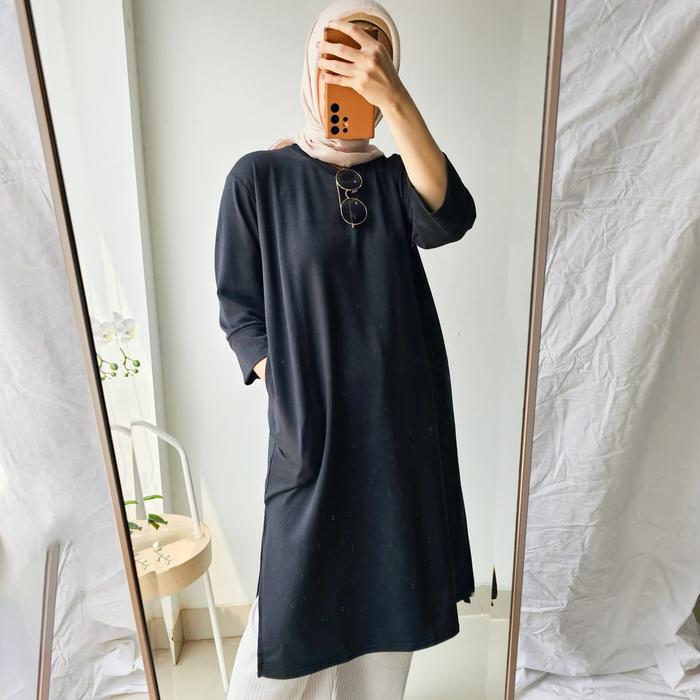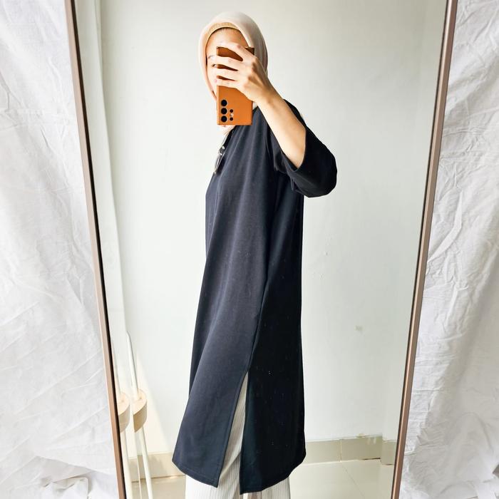 Emikoawa Tunik Dress Kaos Basic bumil Atasan Wanita Kantong - Black