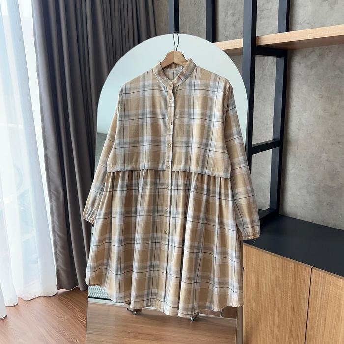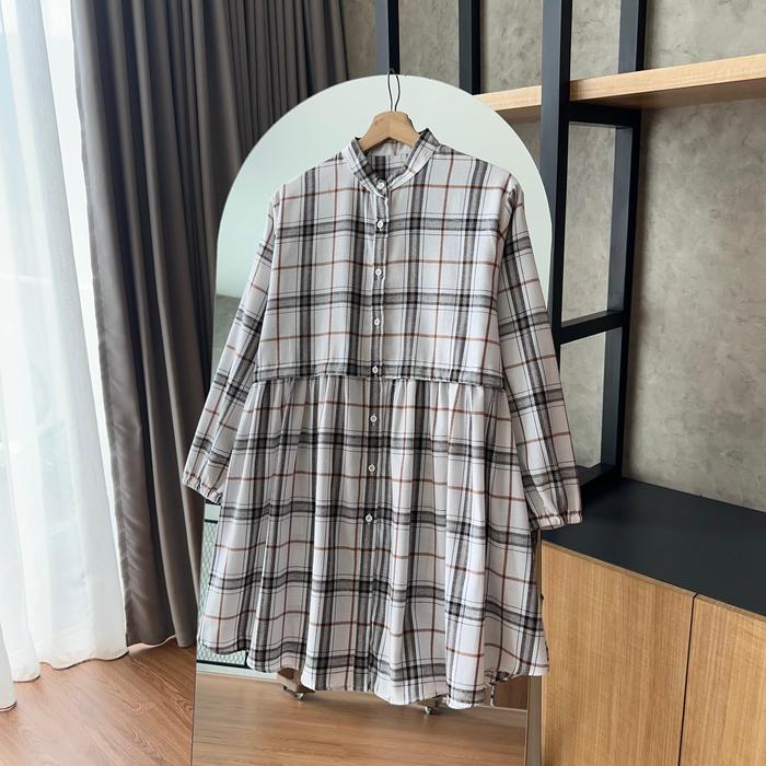 BY.HANA 627 | Tunik Kerah Shanghai Rempel Motif Atasan Muslim Wanita Variasi Kancing Rayon Twill - Motif 3 (Flanel)