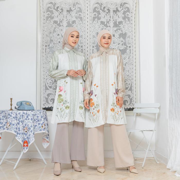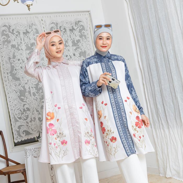 NIKA TUNIK BAHAN SILK PRINT DIGITAL - Navy M