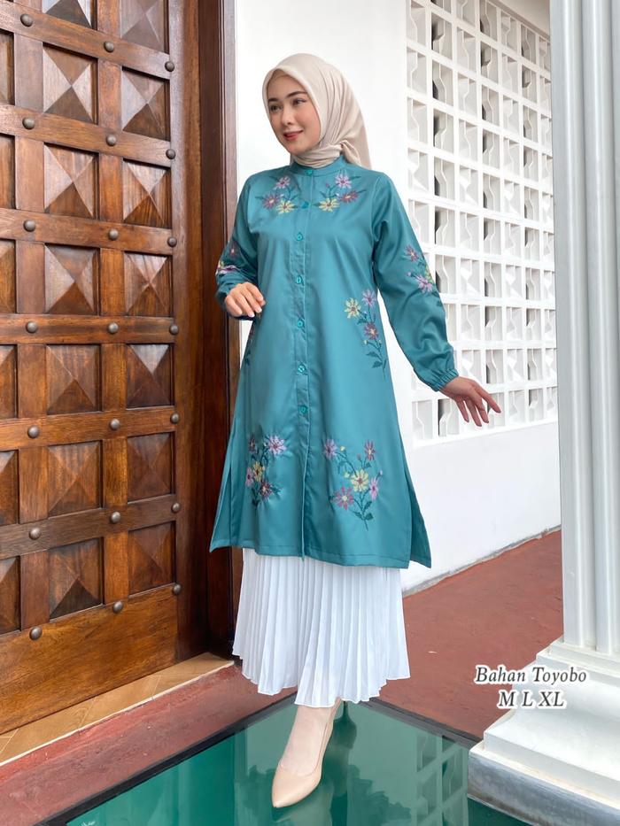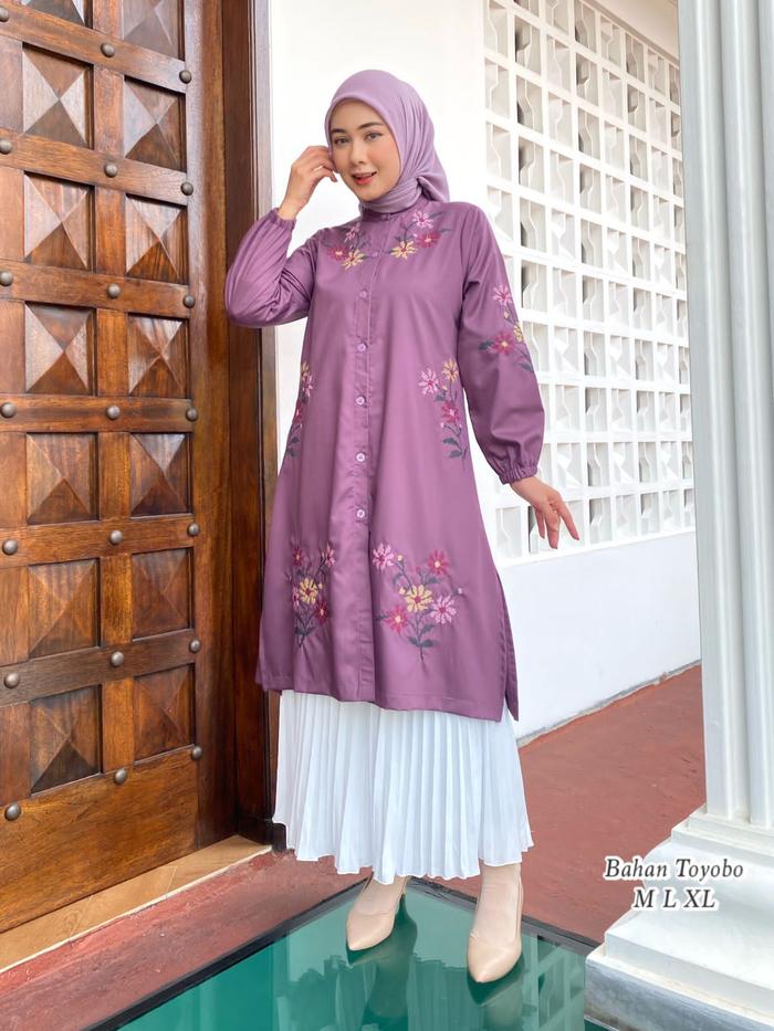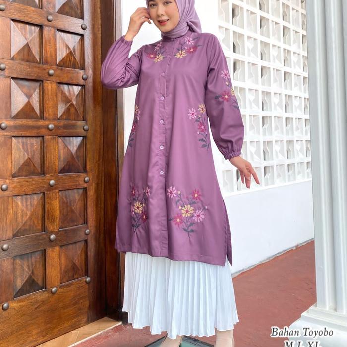 long tunik malika katun toyobo bordir fashion muslim wanita terbaru terlaris wanita - ungu m
