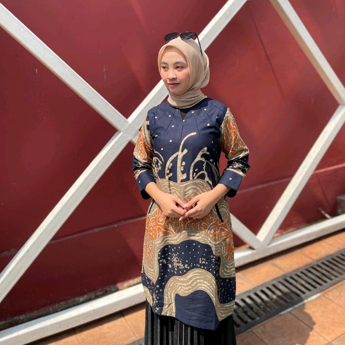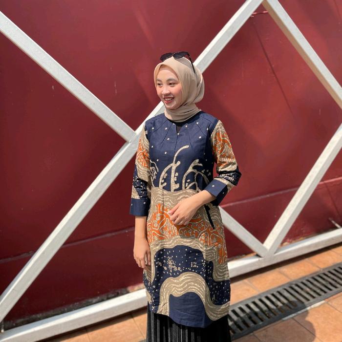 Batik tunik dress motif sarang biru bahan katun - Tunik Sarangan S