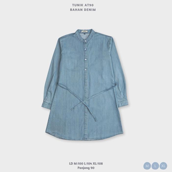 Anyostore AT90 Atasan Tunik Wanita Soft Denim - DENIM M