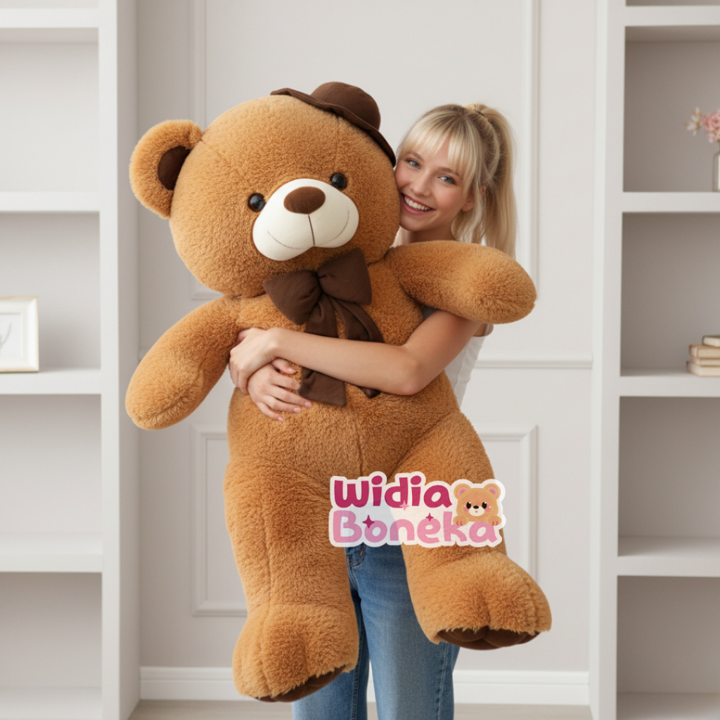 Boneka Teddy Bear Topi Pita JUMBO 90cm Bahan Rabbitfur PREMIUM